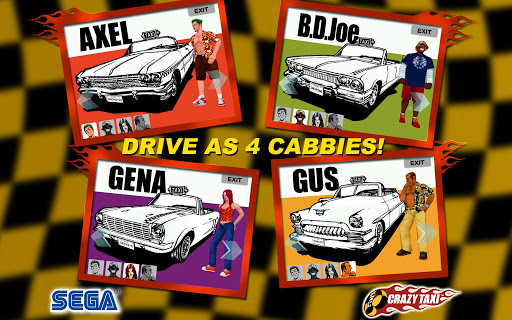 Hey hey, return on over and have some fun with Crazy Taxi! Barrel through traffic packed streets, hurdle off parking garages, and crazy jazz band your way to crazy money in an exceedingly wild frantic race to scare up the most fares. In Crazy Taxi, time is money, and only the craziest cabbies pop out victorious.